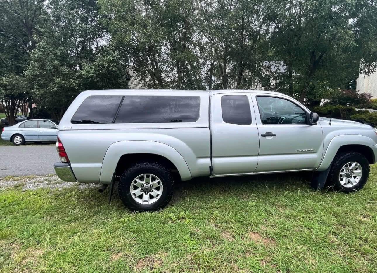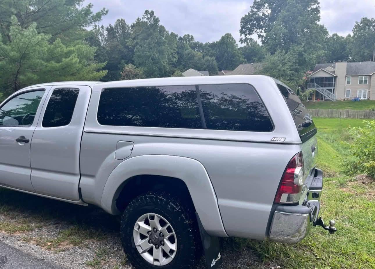 This truck cap boasts a durable build and a sleek, silver, color-matched finish, complementing your Toyota Tacoma’s aesthetic. Currently mounted on a 2013 extended bed, it’s designed to elevate both the functionality and the appearance of your vehicle.